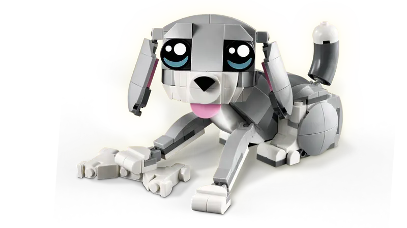 Dzieci mogą zbudować trzy różne zwierzątka z tych samych klocków: ruchomego kota, który może siedzieć, stać i skakać, ruchomego psa z kością oraz gołębia z okruchami chleba. Wszystkie trzy sceny sprawiają, że jest to świetny prezent LEGO dla dzieci.