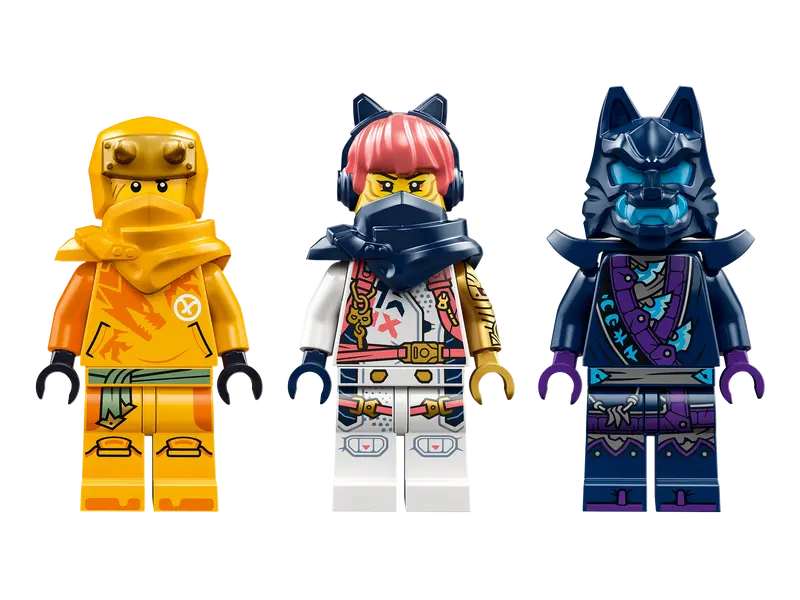 W tym zestawie znajdują się trzy minifigurki: Arin uzbrojony w hak do wspinaczki i miecz, Sora z kataną oraz nikczemny wojownik Wilczej Maski z mieczem. Dzieci mają więc wszystko, czego potrzebują, aby odgrywać rolę wojowników ninja i toczyć pełne akcji bitwy.
